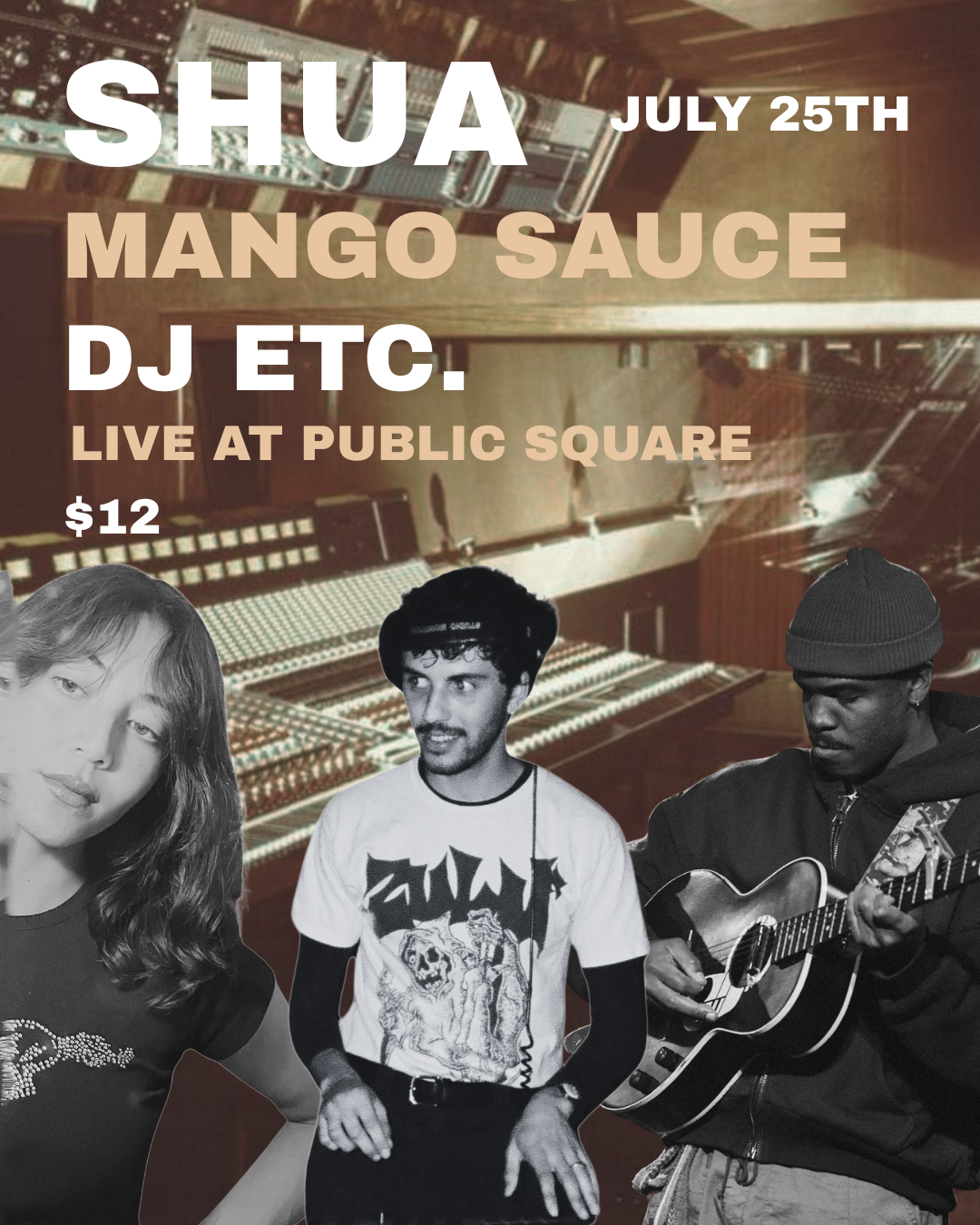 SHUA w/ Mango Sauce, & DJ Etc. Friday, July 25, 2025 7:00 PM 10:00 PM Public Square After-Hours 8278 La Mesa Boulevard La Mesa, CA, 91942 United States (map) Google Calendar ICS Buy Tickets on Eventbrite Buy Tickets